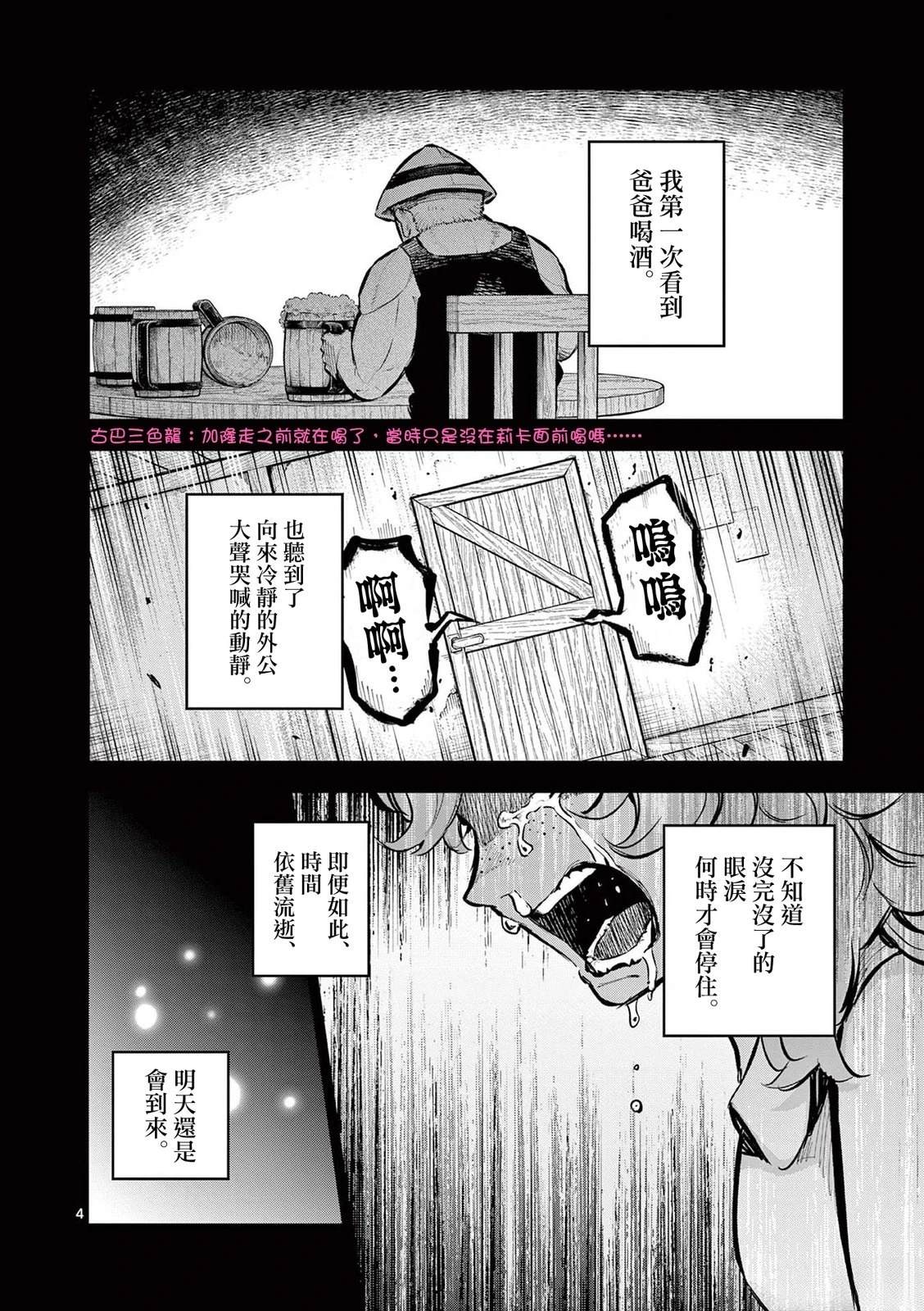 天明5年,尽管世间正因饥馑缺乏食粮,在主人公可畏居住的山村因为可以狩猎野生动物比其他地方要稍微好上几分。但是,在某一日有一位在山林中迷失的男人来到了村里。尽管可畏诧异于这个男人不愿和自己对上视线,仍和家人一起招呼了他。然而当晚,村外的野兽始悄悄潜入了村中…